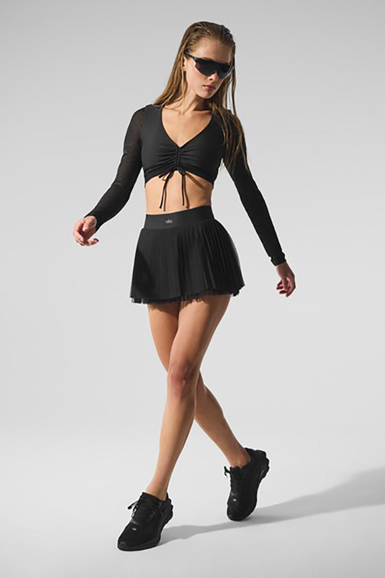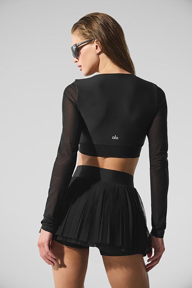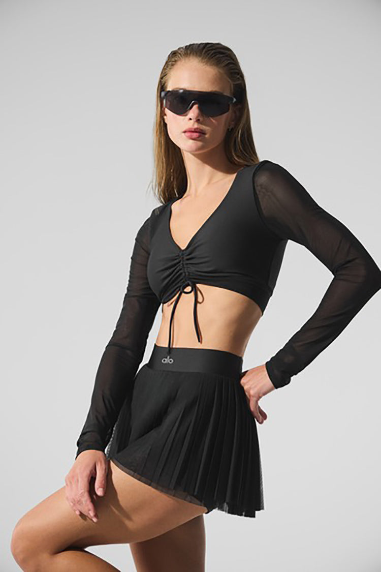 Add a touch of femininity to any look with the Airlift Mesh Divine Long Sleeve Bra. Made of our signature Airlift fabric, it has chic mesh details and sleeves that give it something special. Find your perfect crop with the adjustable front cinching for a chic look for your next workout.