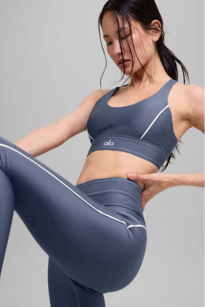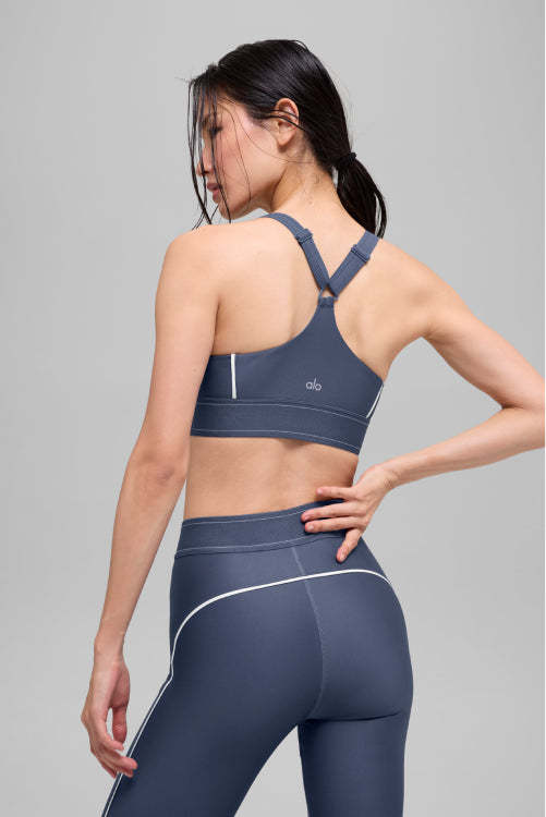 Ready for action. The medium-impact Airlift Suit Up Bra is so supportive for movement and perfect for pavement. Ultra-forward piping & adjustable straps complete the look of this solo-or-layered stunner in second-skin Airlift. Looks so good with the matching legging, high-rise shorts & easy slides.