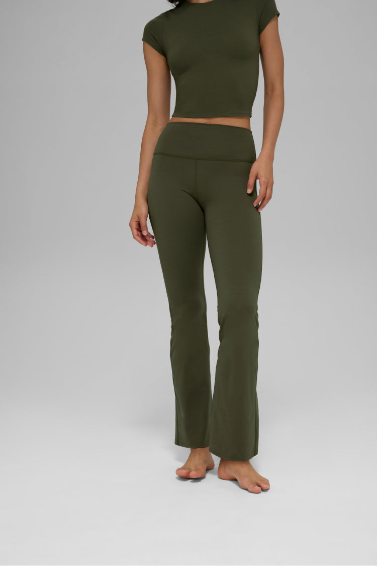 The ALO Softsculpt High-Waist 7/8 Bootcut Legging takes studio-to-street style to a new level with its flattering flare and sleek silhouette. Made from our signature medium-compression fabric, it offers gentle sculpting with a naturally breathable feel and a subtle sheen that elevates any look. Pair it with your favorite ALO Softsculpt bra or shirt for an easy and effortless vibe.
