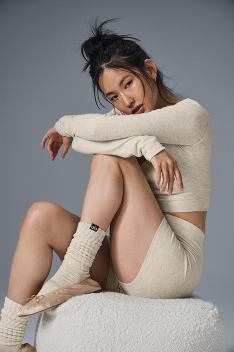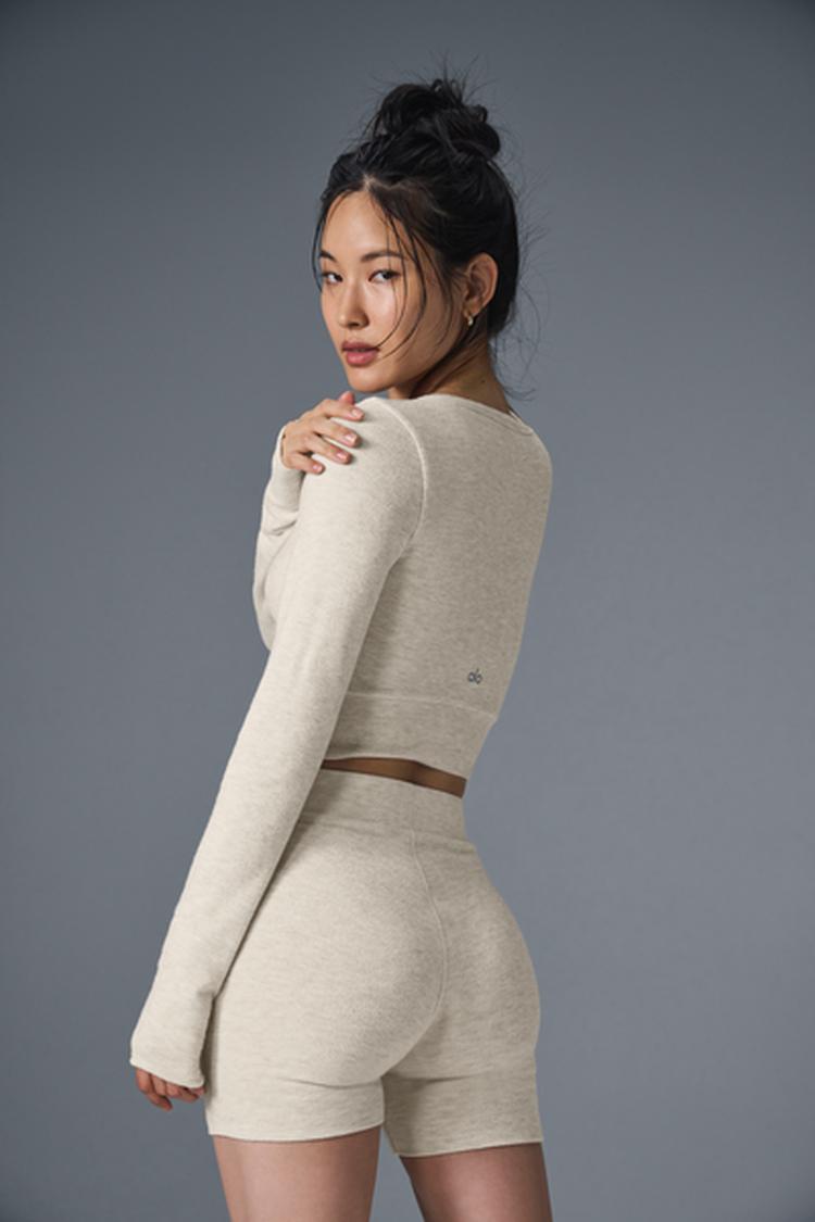 Done in cloud-soft Alolux with a brushed finish that only gets better with time, this cute cropped cardigan turns everyday activites into moments of luxury. And since it’s meant to be worn as a shirt, the buttons dotting down the front are strategically fixed to prevent gapping. Just add the matching shorts, grab a mug of hot cocoa and find the nearest fireplace.