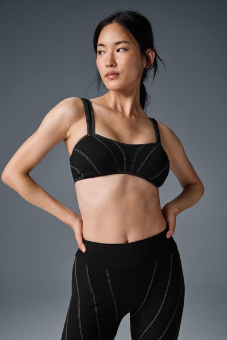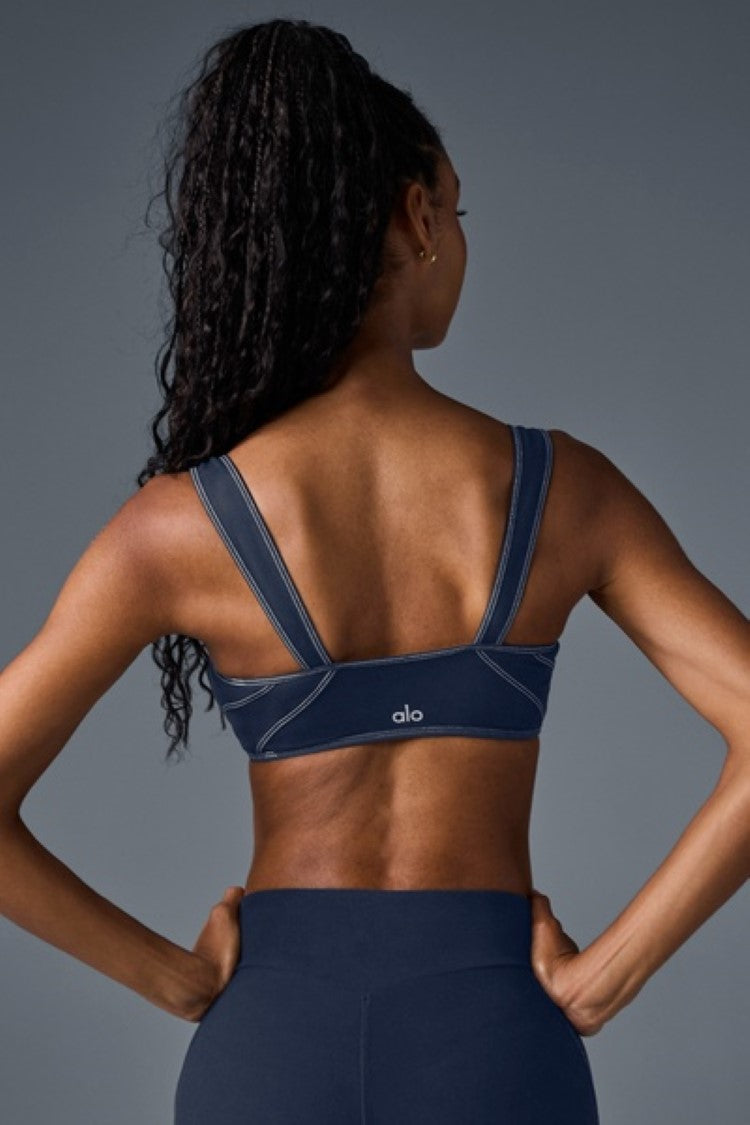 Meet your new favorite bra. It’s designed with thick straps, contrast seams, and a scooped neckline that seamlessly goes from barre class to coffee break. For the full fit, pair it with the Alosoft High-Waist Sunray Legging for an ultra-chic look.