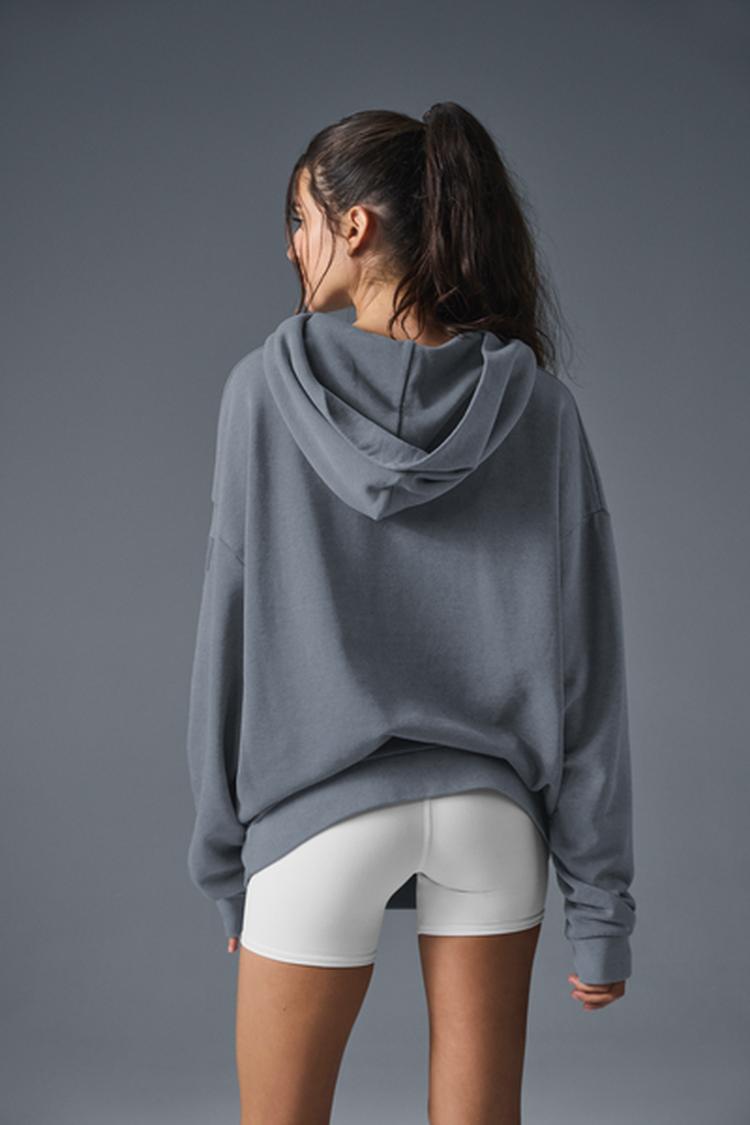 Your new go-to for easy all-day style. This hoodie has a slightly faded, vintage-looking finish that’s cool and casual, and the fit is boxy and a bit oversized. The ribbed cuffs and hem keep it cozy, and a big front pocket is perfect for stashing a phone or cold hands. Make it a set with the Chill Vintage Wash Sweatpants.