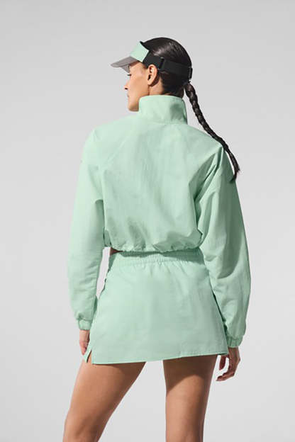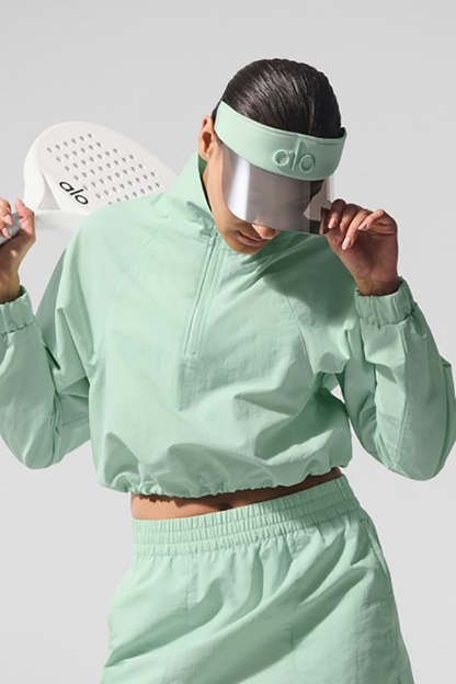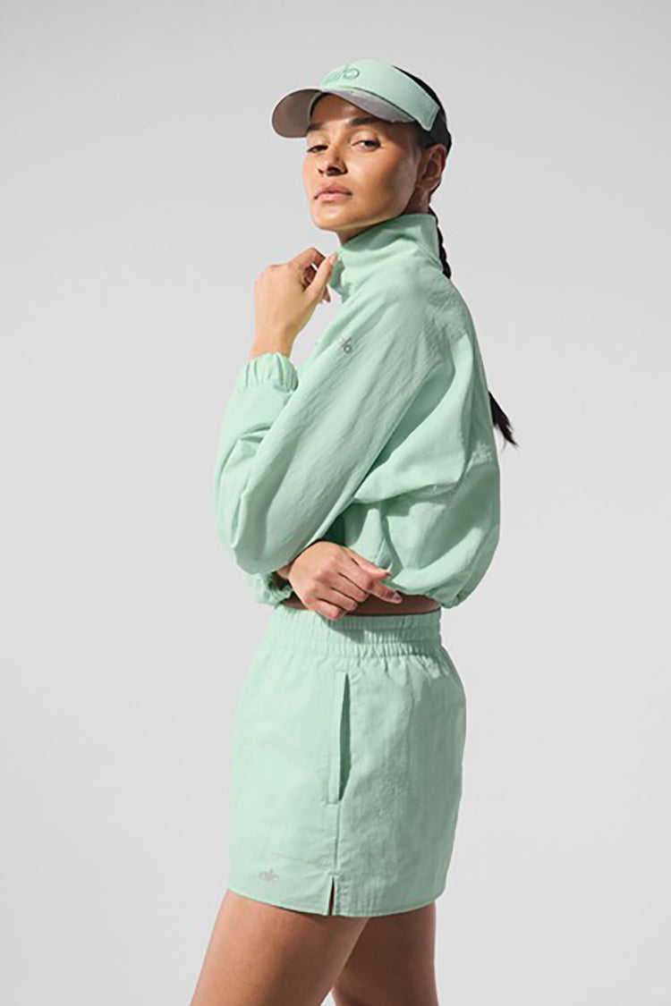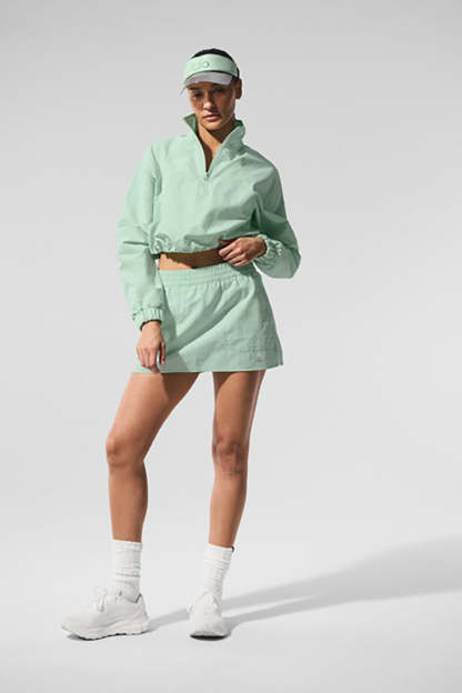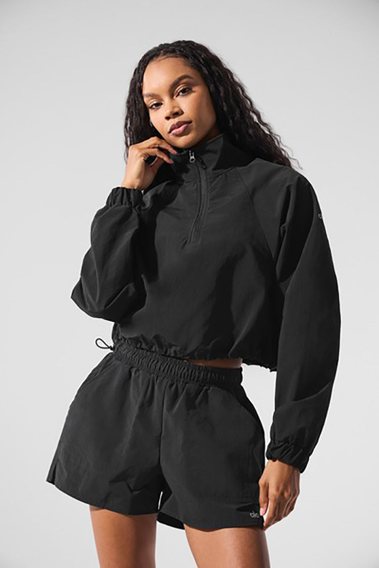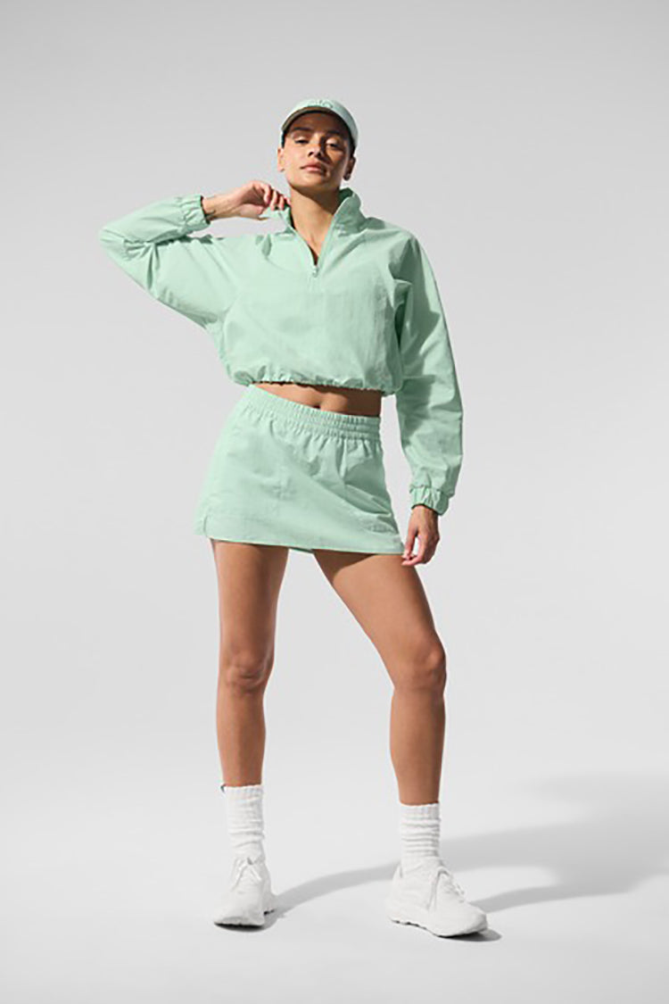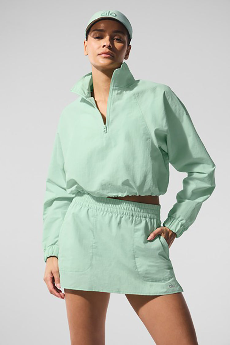 Upgrade your coverup collection with the Cropped ¼ Zip Alumni Pullover, cut from cool crinkle woven fabric that’s perfect for to-and-from yet easy enough to lounge in. Make it pop with leggings, biker shorts or a cute tennis skirt.