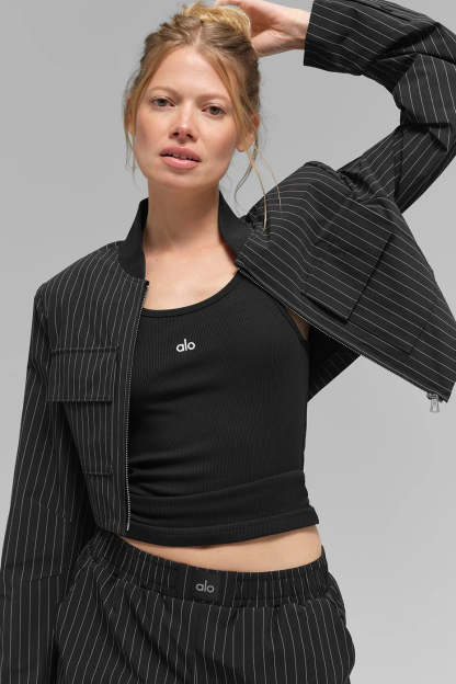 CROPPED PINSTRIPE MAIN CHARACTER FULL ZIP JACKET