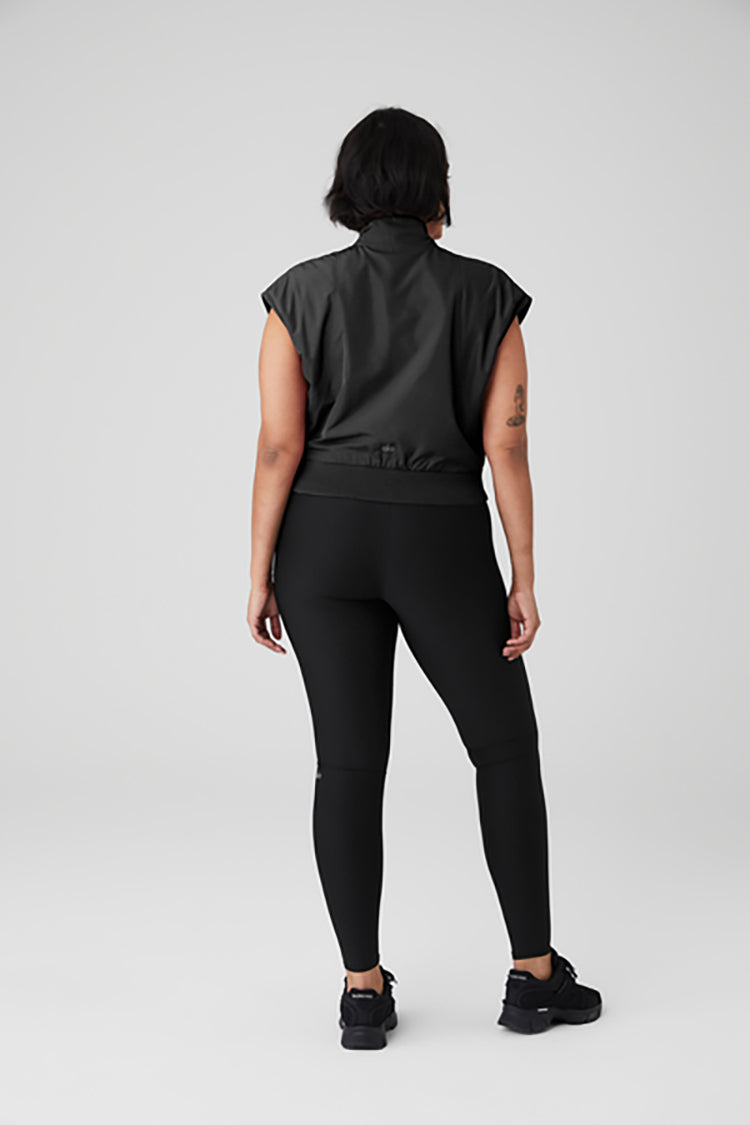 Versatile warmth without the unnecessary bulk, the In Motion Vest is destined for cold-weather adventures near and far. This lightweight woven vest with polar fleece lining provides the perfect amount of warmth for to-and-from, with a tall collar for added protection against the chill. Forward, angular sleeves, a contouring ribbed waistband and elevated princess seams create the perfect silhouette. Built-in side slip pockets hold small, on-the-go essentials.