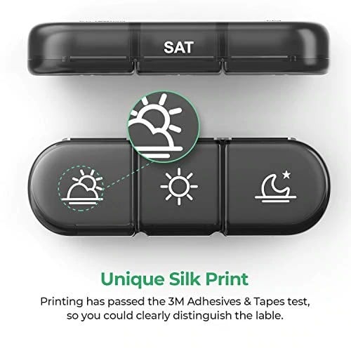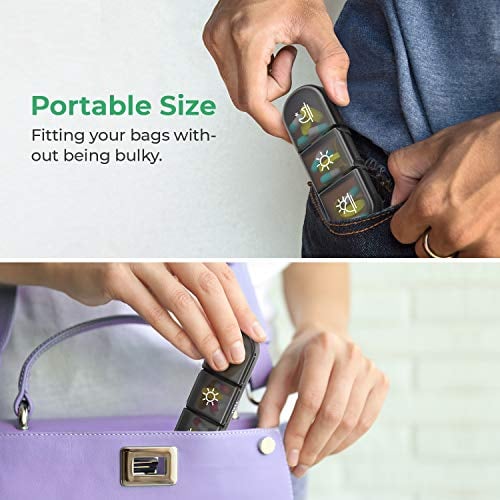 Pill container (morning, noon and night) sort your pills 3 times a day; larger black shell can accommodate 7 independent pill box organizer to plan the pills for a week. Separate pill holder, this pill dispenser has 7 movable vitamin