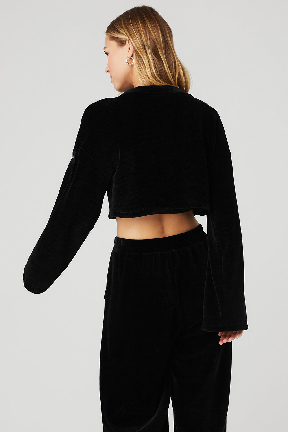 Nothing feels better than slipping on the Chenille Chalet Cardigan 〞 a cropped coverup done in plush micro chenille with wide, flared sleeves that add a bit of understated luxury to your fave wear-everywhere cardi. Complement this cool silhouette with a flowy tennis skirt or flutter legging.