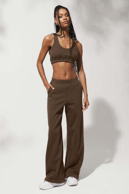 Comfy just leveled up. The High-Waist Trouser Wide Leg Pant in soft, brushed French terry is that just-right balance of chill and elevated, with wide legs and a skinny silhouette. Faux welt pockets, a bottom turn-back & elevated seams give major professional vibes to this lounge-comfy look. Wear it with a statement bra on the street or crush it on the clock with a tailored top.
