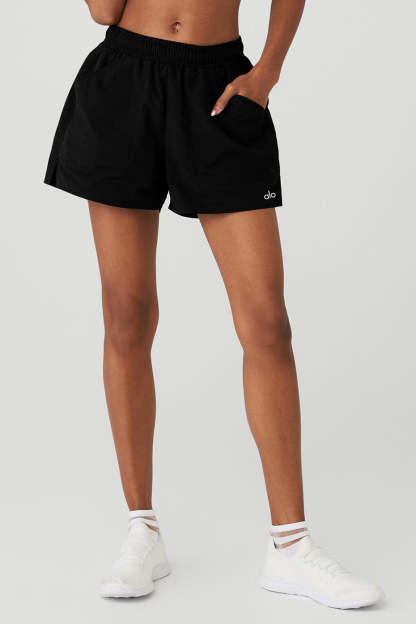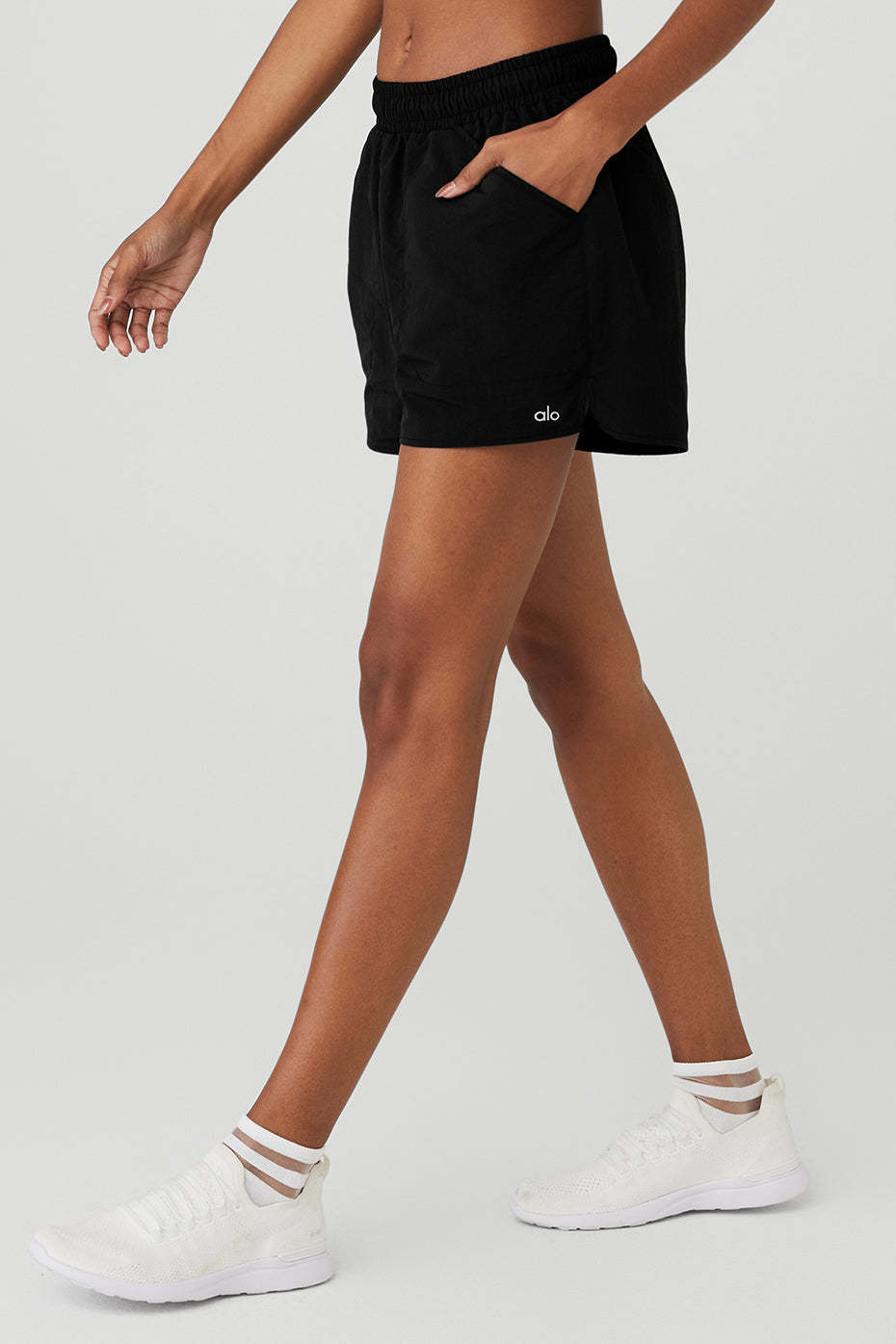 Bend, stretch, hike and explore new heights in the Alumni Short. Made in our lightweight, sport-ready woven fabric, it features a flattering high-waist design, an easy internal drawcord, and side slit pockets to store keys, lip balm and other small essentials. Go head-to-toe and hit the pavement with the matching cropped pullover.