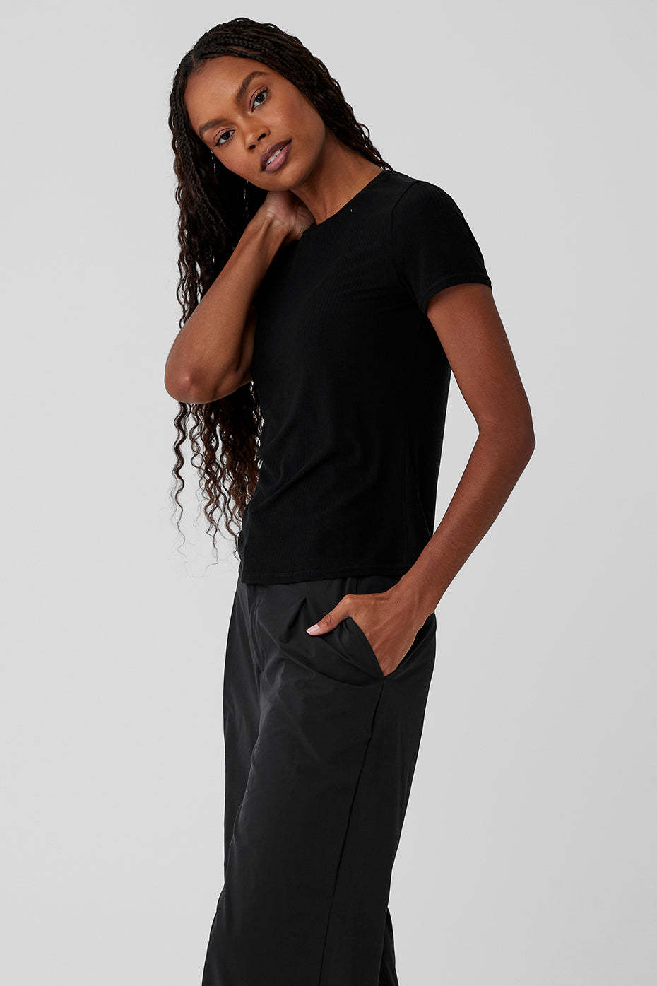 - Soft, stretchy, lightweight ribbed fabric blend