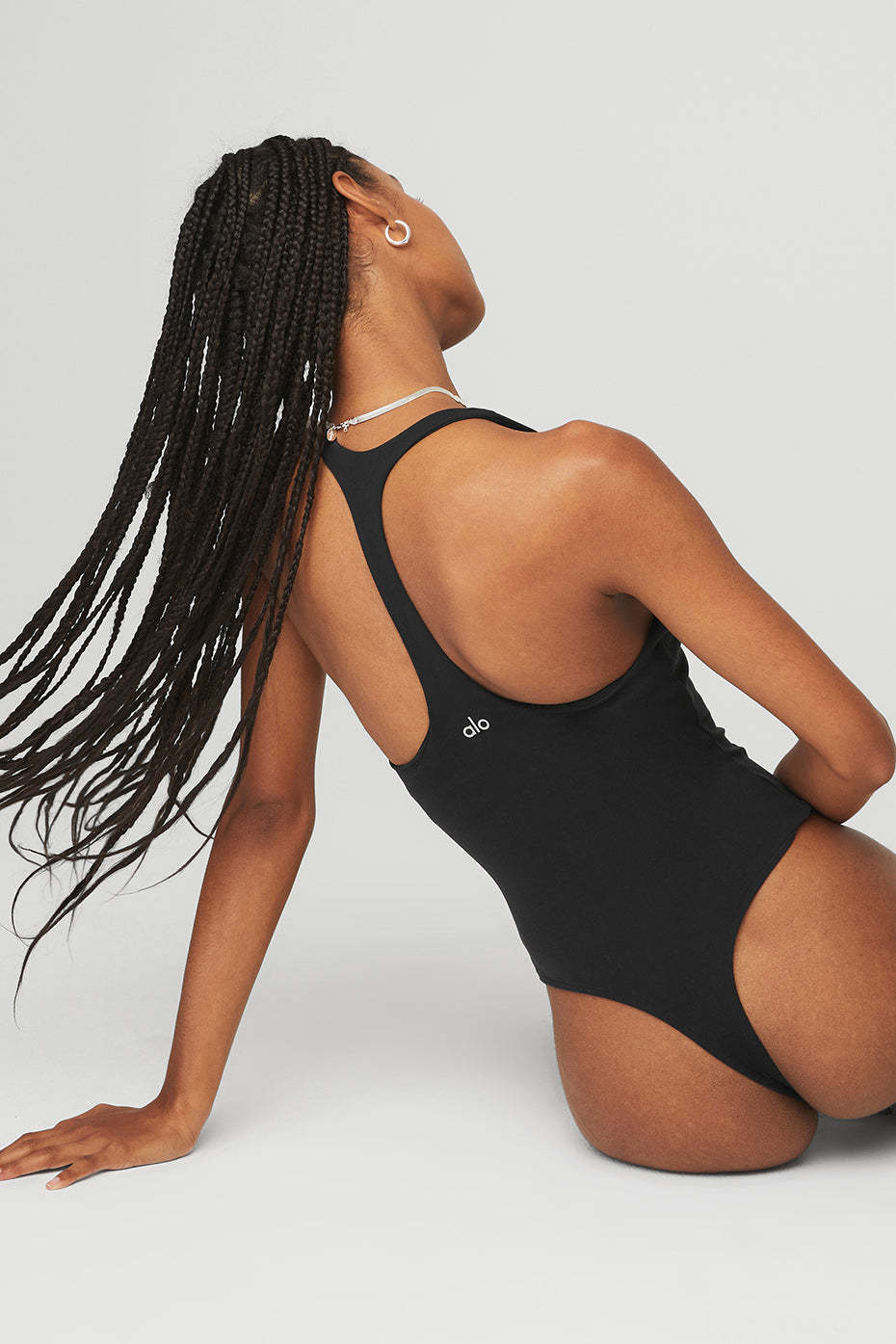 Literally the perfect layer 〞 no VPL, tons of cool. The Sleek Back Bodysuit in sculpting Airbrush features a built-in shelf bra for light support, a T-back, scoop neckline and a thong backside for super-smooth layering under leggings.