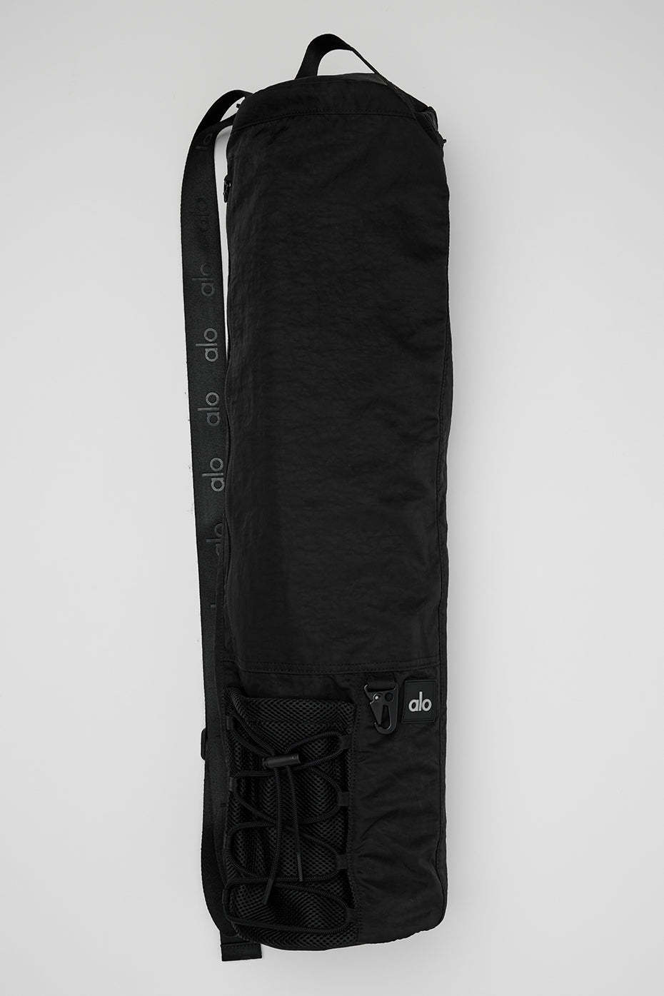 A yoga class necessity. The Yoga Mat Bag is studio-street smart with a soft, adjustable shoulder strap and a top handle for easy carrying. Easily attach your keys with the carabiner hook and store small essentials in exterior grab-and-go mesh storage pockets.