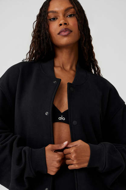 Add a new game-changing layer to your rotation. The Renown Varsity Jacket is made from comfy, heavyweight French terry with drop shoulders, a button front closure, and a smooth look and feel that nails the cool, street-ready vibe. Front slip pockets are handy for storing keys, phone and small essentials on the go.