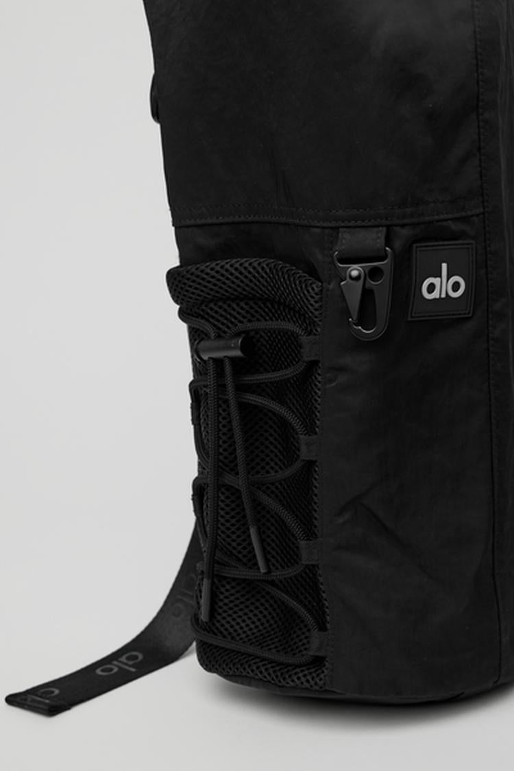 A yoga class necessity. The Yoga Mat Bag is studio-street smart with a soft, adjustable shoulder strap and a top handle for easy carrying. Easily attach your keys with the carabiner hook and store small essentials in exterior grab-and-go mesh storage pockets.