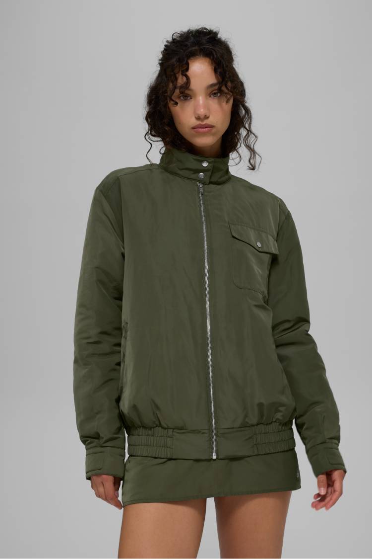 Effortlessly cool with a borrowed-from-the-boys energy, the Work It Bomber adds a touch of edge to any look. The relaxed, oversized silhouette easily layers over all of your outfits, while the subtle structure makes it an intentional piece that’s effortlessly cool whether you’re heading to a mid-day yoga session or heading to a late-night dinner with friends. Wear it shrugged off the shoulders or zipped up for that model-off-duty finish.